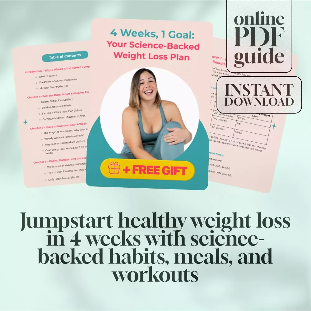 Ready to feel better, look stronger, and build lasting habits? Download 4 Weeks, 1 Goal: Your Science-Backed Weight Loss Plan today and take your first confident step toward sustainable weight loss.