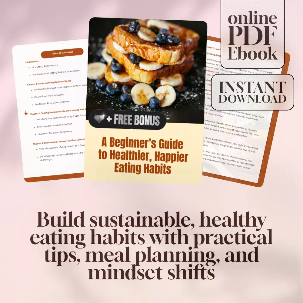 If you’re wondering how to start eating right without feeling overwhelmed, A Beginner’s Guide to Healthier, Happier Eating Habits is the perfect first step. This downloadable eBook is your go-to roadmap for transforming the way you eat and feel—without restrictive diets, confusing rules, or guilt. Whether your goal is weight loss, boosting your energy, or simply building better eating habits, this guide offers practical advice and real-life strategies designed for busy people who want lasting results.