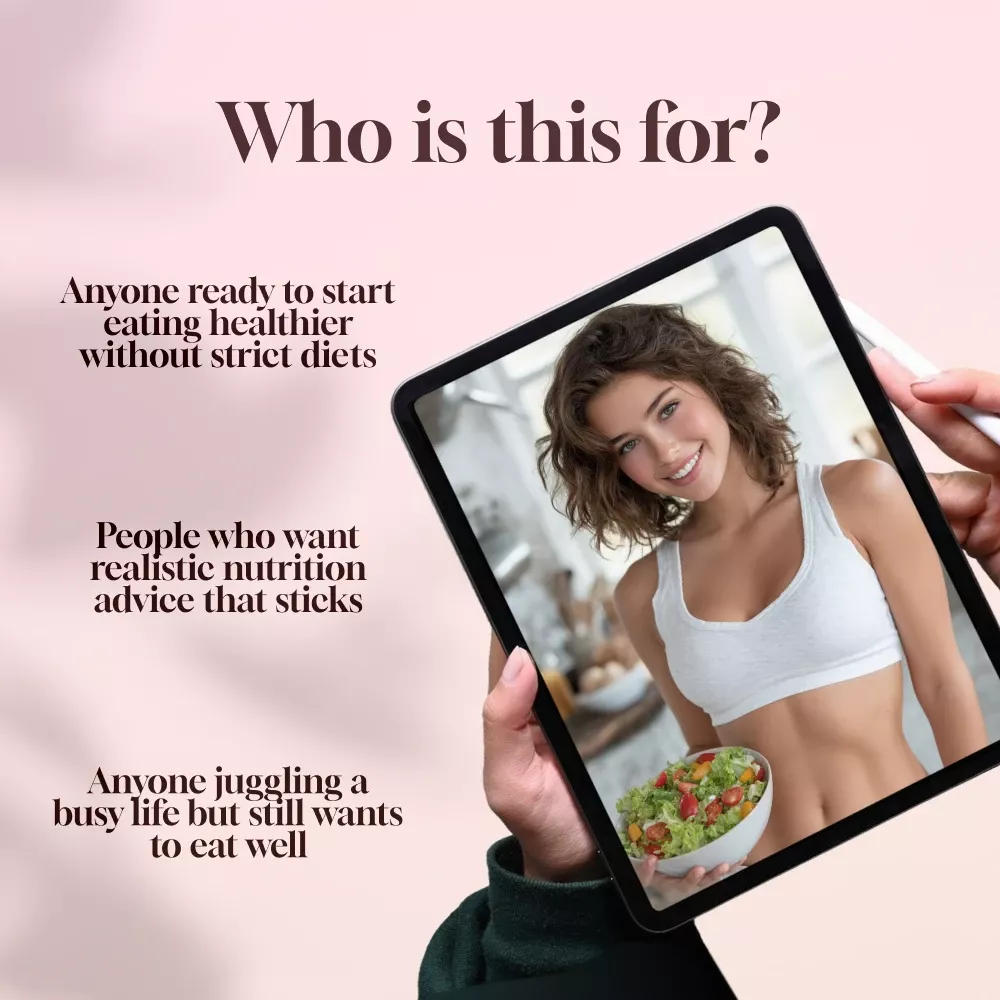 Created for absolute beginners, this resource breaks down nutrition into simple, clear lessons and offers step-by-step help to build sustainable eating habits that support a healthier lifestyle. If you’ve struggled to stay on track or don’t know where to begin, this guide will empower you with the tools and motivation you need to succeed.