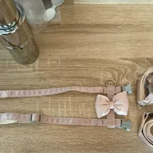 Give your feline friend the freedom to explore while keeping them safe and stylish with our Adjustable Cat Harness and Leash Set. This blinged-out harness with a bow trim is designed for cats who deserve the best of both fashion and function. Whether you’re taking your cat for a walk in the park or just letting them explore the backyard, this harness provides the security you need while making your cat look absolutely adorable.