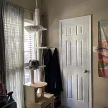 It was surprisingly easy to build. I have 5 cats that absolutely love it. Sometimes arguments breakout when two of them both want to sit in the hammock at the top! It’s very secure with my athletic, zooming, 13 pound cat never even making it wobble. Definitely recommend for more height and not taking up too much floor space