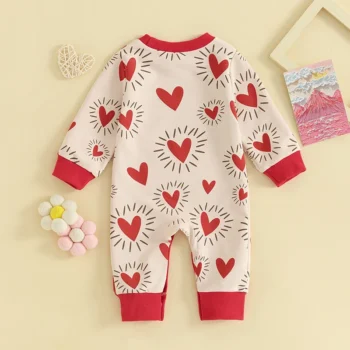 Baby Girls’ Valentine’s Day Heart Print Hooded Romper