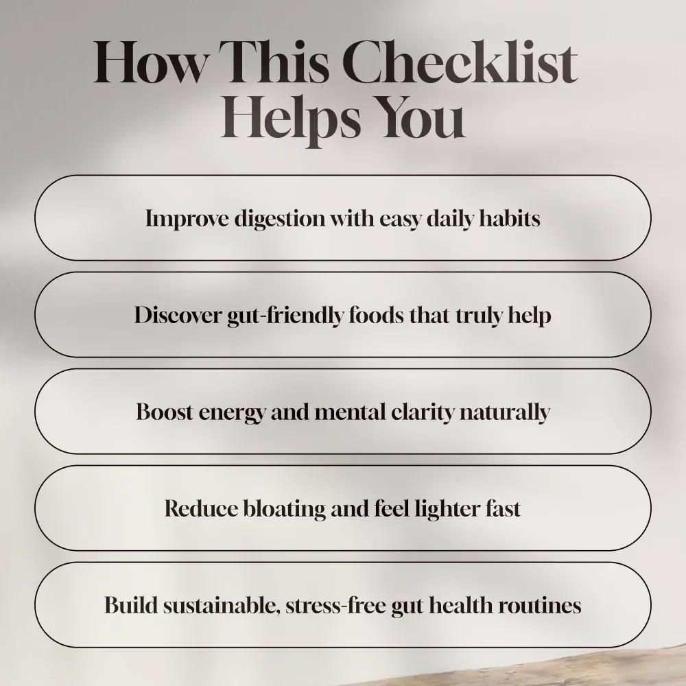This checklist is ideal for anyone looking to reset their gut health, reduce digestive discomfort, improve mental clarity, or simply feel better from the inside out. Whether you’re a wellness beginner or looking for a no-fuss refresh, you’ll love how easy and doable this guide makes it.