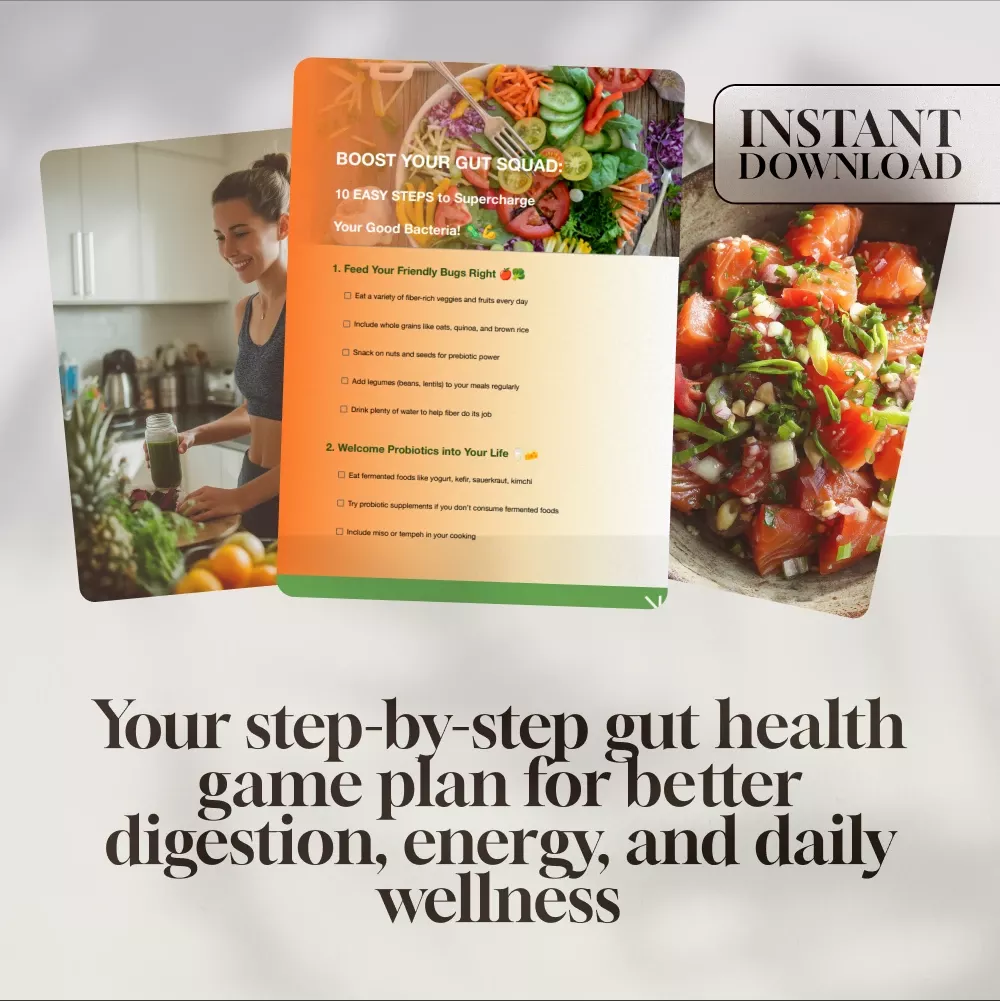 Your gut is the command center for your digestion, mood, immune system—and even your energy. If you’ve been wondering how to get healthy bacteria in your gut without the guesswork, this digital checklist has your back (and your belly!). “Boost Your Gut Squad: 10 Easy Steps to Supercharge Your Good Bacteria!” is your go-to guide for building a thriving, happy microbiome with zero overwhelm.