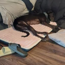 no more stiff muscles or joint pain for old rover...he's been sleeping like a puppy since we got him this cushioned mat.