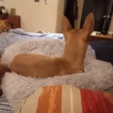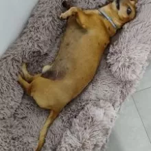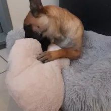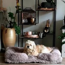 the dog is verry happy. Nice dog bed, verry soft and cosy. My dog wont leave his New dog bed. NIce color
