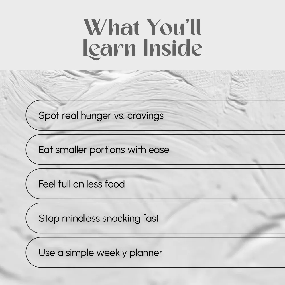 Instead of following extreme diets or cutting out your favorite foods, this guide shows you how to build a healthy, sustainable relationship with food—so you feel empowered, not restricted. If you’re ready to stop overeating and start feeling great in your own body, this guide is your starting point.
