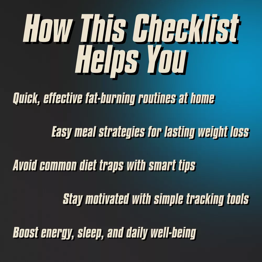 Ready to take control of your fitness goals without stepping foot in a gym? The Fast Fat Burn At Home Checklist is your ultimate digital companion to burning fat quickly, effectively, and sustainably—right from your living room. Whether you’re a beginner or rebooting your health journey, this easy-to-follow, expert-backed guide shows you exactly how to burn fat fast at home with simple workouts, smart nutrition tips, and practical lifestyle tweaks.