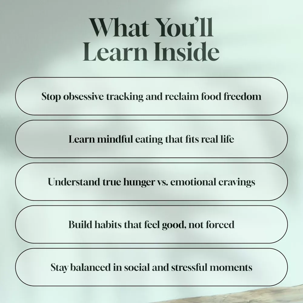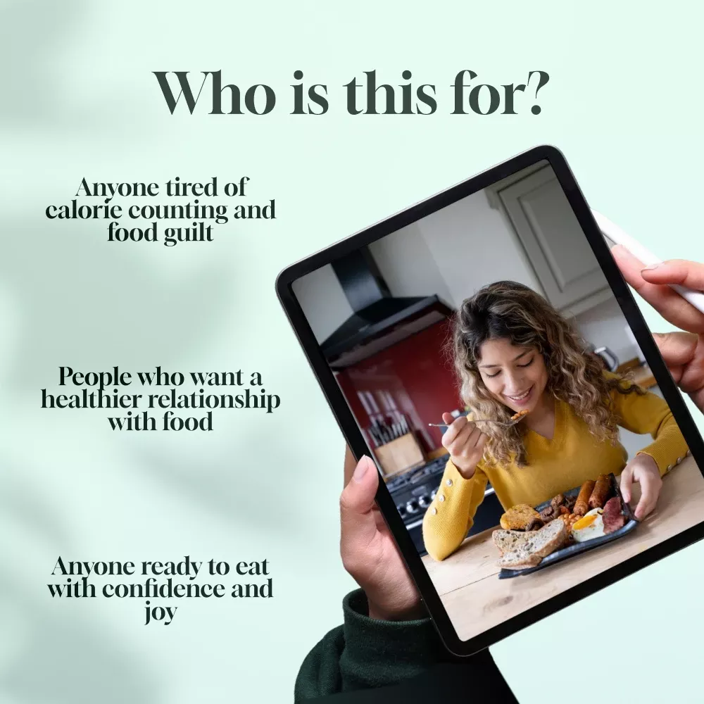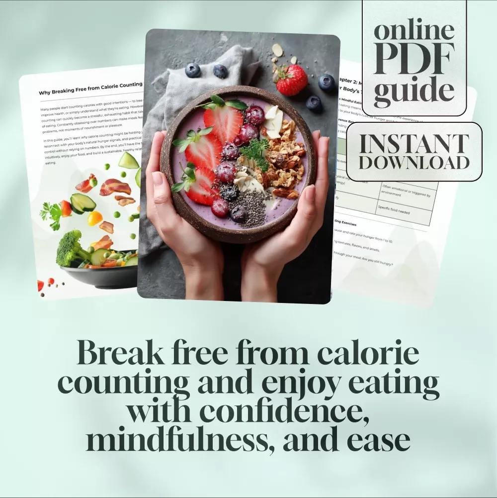 This digital guide is ideal for anyone who’s ever felt overwhelmed by calorie counting, stuck in diet culture, or out of touch with their body’s natural cues. If you’re asking how to stop counting calories and truly want to feel confident with food again, this eBook is for you.