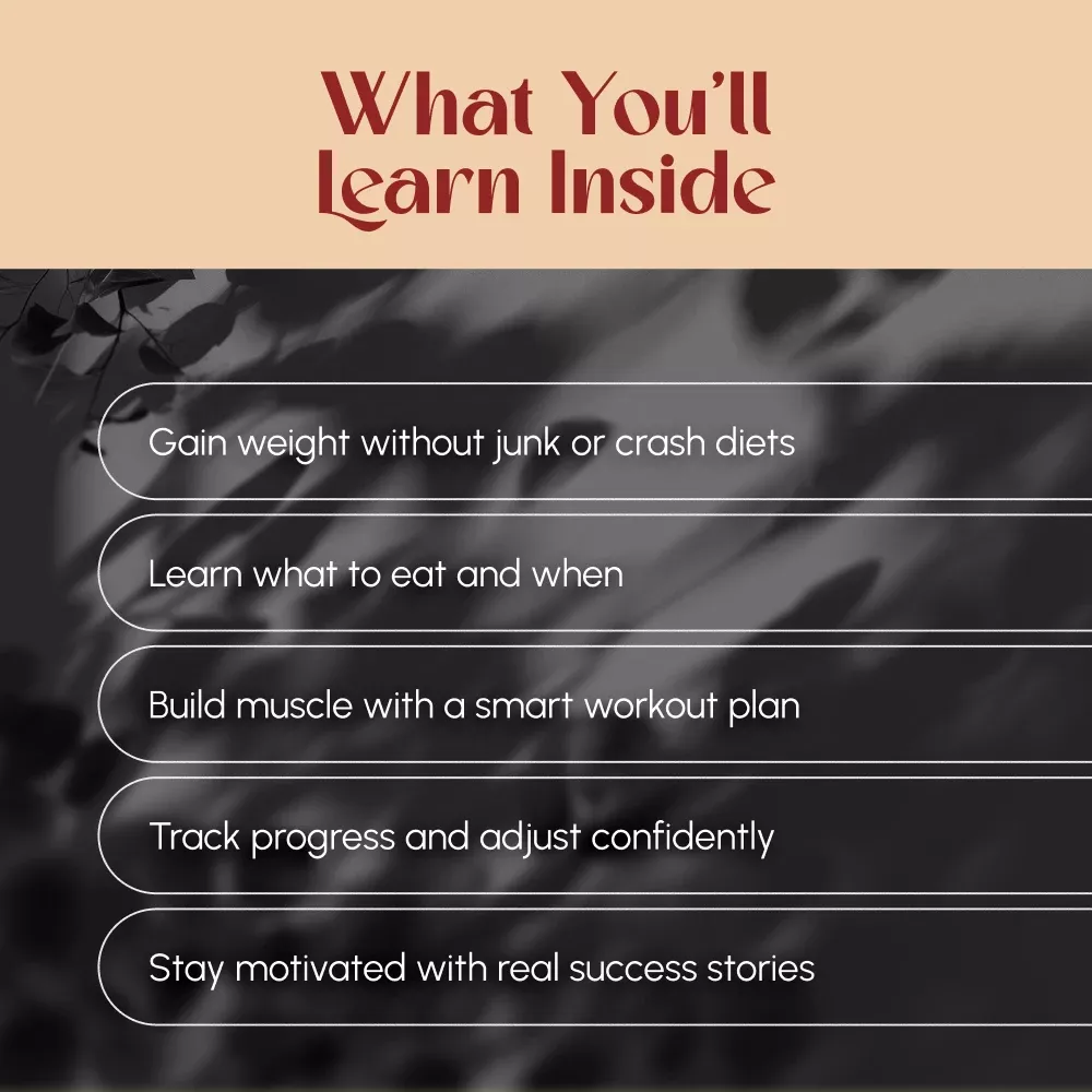 • Chapter 1: Know Your “Why” and Your Body — Understand the real reasons behind being underweight, how metabolism and genetics play a role, and how to set achievable goals.