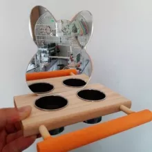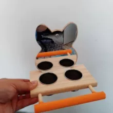 i wasn’t sure how my bird would react to this, but he loves it! the mirror catches his attention, and he spends hours chirping at his reflection. the feeder cups are a nice bonus—they keep him busy while offering snacks or small toys to forage. the toy is well-made and sturdy, and it was simple to attach to his cage. i’ve noticed he’s more active and engaged since i introduced this, and it’s really brightened up his environment. it’s easy to clean, and i appreciate that it’s both functional and fun for my parrot. overall, i’m very happy with this purchase.