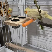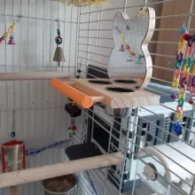 my parrot absolutely loves this toy! he spends a lot of time looking at himself in the mirror and using the feeder cups. it’s sturdy, easy to install, and the design keeps him engaged throughout the day. i’ve noticed he’s more active and playful since i added this to his cage.