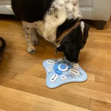 my little buddy can't get enough of this toy! he eats slower now which is great because he used to gulp his food down so fast... plus it keeps him busy when i'm working from home 😊
