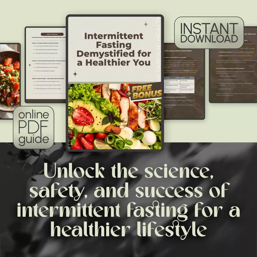 Curious about how healthy is intermittent fasting? Whether you’re exploring fasting for weight loss, better energy, or overall wellness, Intermittent Fasting Demystified for a Healthier You is your complete beginner-to-advanced guide. This downloadable digital guide breaks down the science, busts myths, and gives you real-world tools to safely and effectively integrate fasting into your lifestyle. No fluff—just proven strategies, easy-to-understand science, and clear action steps to help you feel and perform your best.