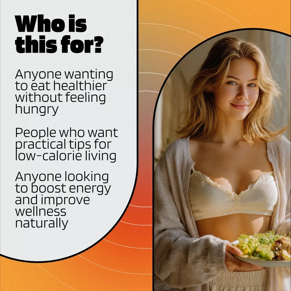Unlike other digital downloads, this eBook combines science, psychology, and practical meal strategies into one user-friendly guide. It’s not just about eating less—it’s about eating better. Plus, with a focus on healthy low calorie foods that actually satisfy, you’ll never feel like you’re missing out.