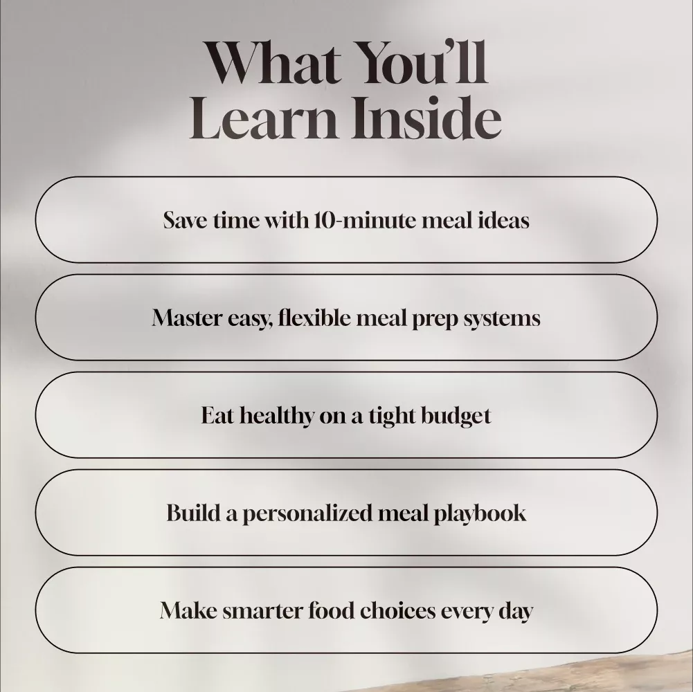 I've tried other digital guides before but none were as comprehensive or user-friendly as this one. From budget-friendly food strategies to time-saving meal prep systems, everything you need to master quick nutritious meals is right here!