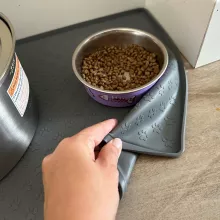 Finally, a pet placemat that's easy to clean and looks great in my kitchen The silicone material is durable and doesn't slip around on the floor. 🐾👍