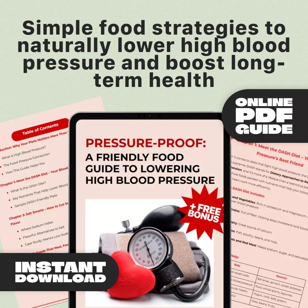 Download Pressure-Proof: A Friendly Food Guide to Lowering High Blood Pressure today and discover how the best diet for high blood pressure can work for your life—not the other way around. Click “Add to Cart” now and start feeling better, one bite at a time.