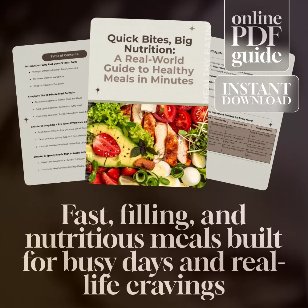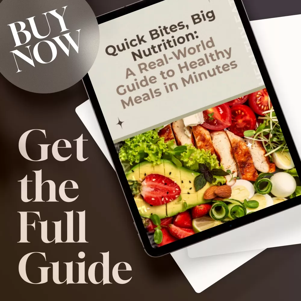 Download Quick Bites, Big Nutrition today and start making quick nutritious meals that actually satisfy your hunger and your schedule. It’s time to ditch the stress, keep it real, and eat in a way that supports your energy, health, and life.