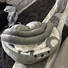 Our newest family member couldn't be happier with his new sleeping spot! He loves curling up in this cozy bed made from soft arctic velvet material. Its three-dimensional semi-enclosed design offers him much-needed security after a long day of exploring around the house. Also, I love how practical it is – easy to clean and stays put thanks to its non-slip bottom!