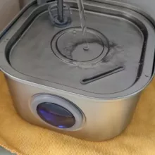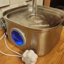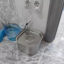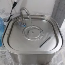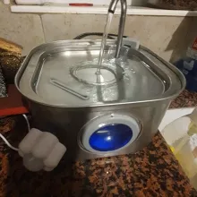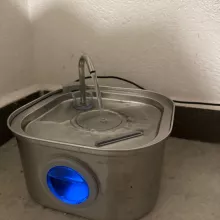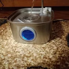 Excellent and quality product. Stainless steel is good. You can see water height. Much better than my old fountain. Easy to replace filter and clean. Looks prestigious also. The Cat and the dog loved. Suitable up to medium dog size. The motion sensor is surprising and recommended works excellent, detects the movement of the dog and cat up to 5 meters. Cats and the dog loved. Invites one to the dog that it stands for cats on the marble for chilled water.