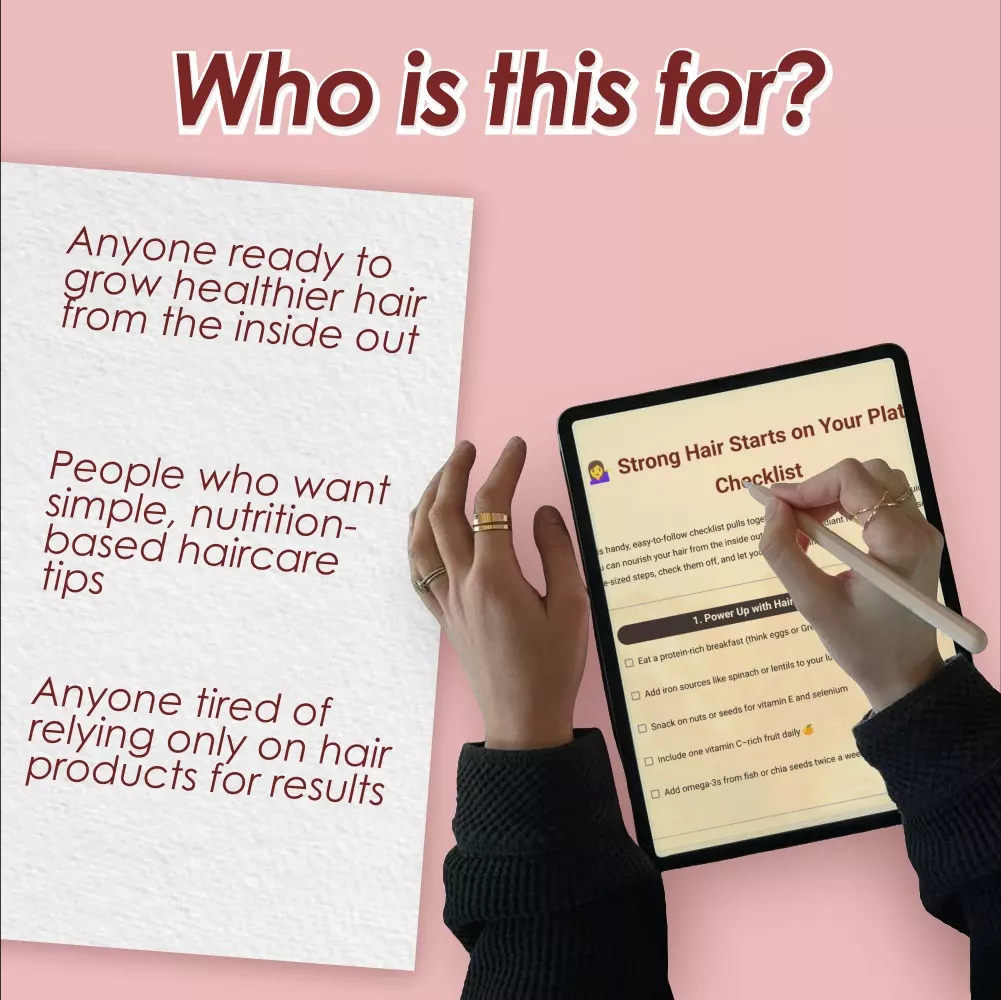 Download the Strong Hair Starts on Your Plate Checklist today and take the first bite toward better hair. Whether you print it or keep it on your phone, this guide is your go-to resource for food for strong hair—made simple. Your healthiest, happiest hair starts now.