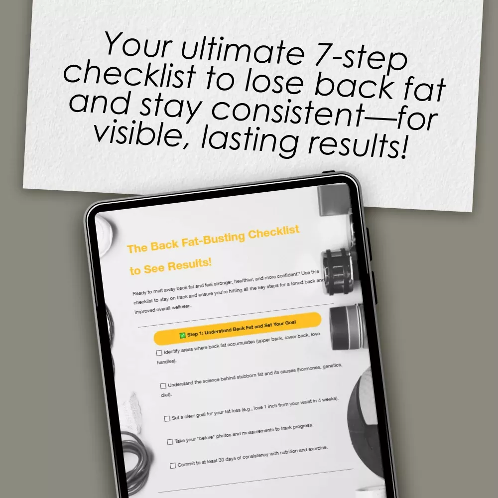 Download The Back Fat-Busting Checklist to See Results! now and take the guesswork out of your fitness journey. Say hello to a sculpted back, improved posture, and better confidence in your clothes — and your skin. This is the guide that finally helps you see real, lasting change.