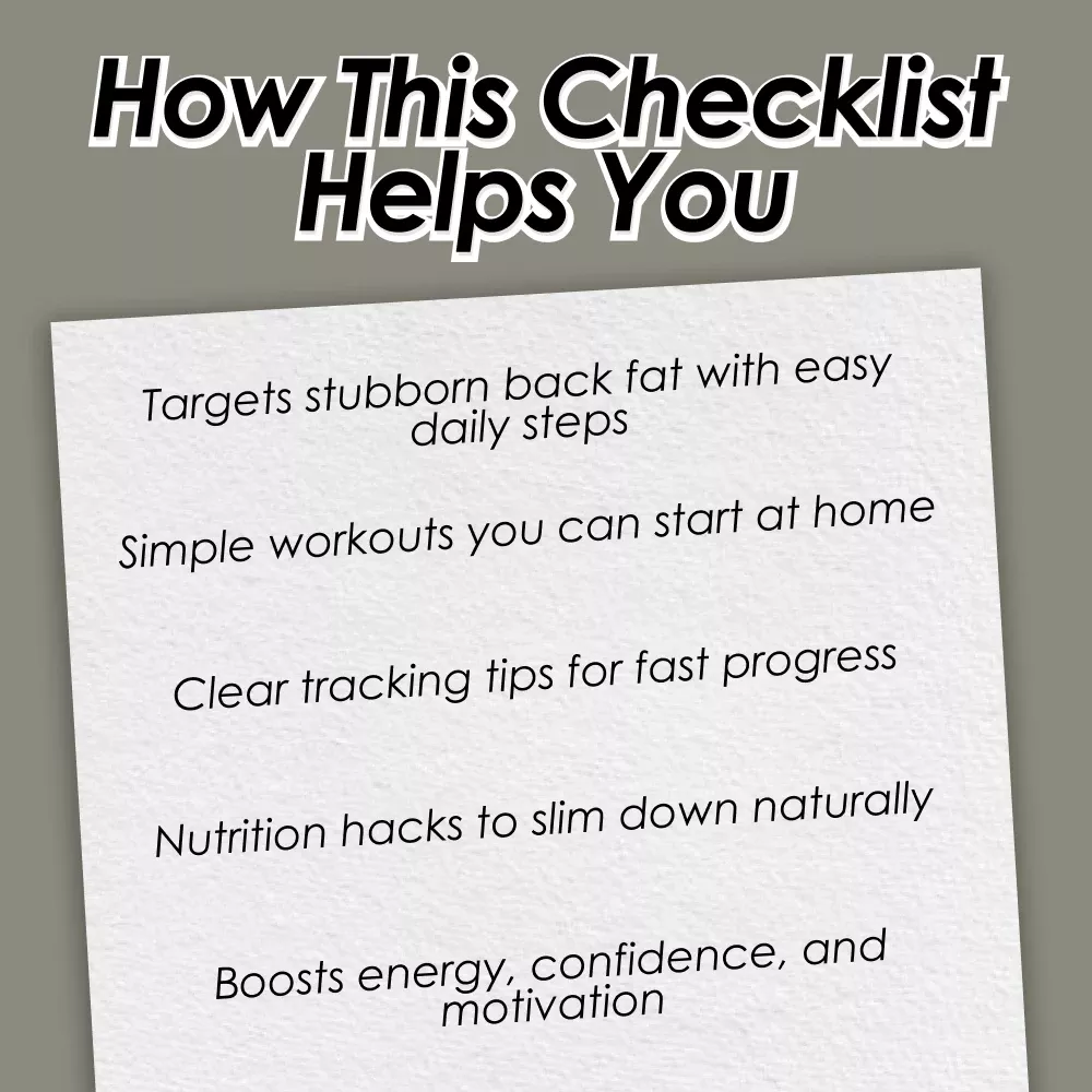 Just when you think you're stuck with stubborn back fat forever, along comes this awesome checklist! It's straightforward and easy-to-follow – perfect for fitness newbies like me. And guess what? My clothes are fitting better already!