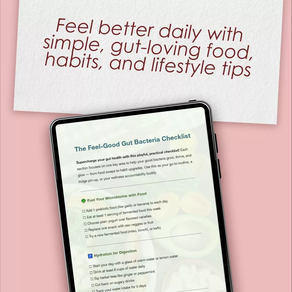 Download The Feel-Good Gut Bacteria Checklist today and start taking control of your gut health. Whether you’re printing it out or using it digitally, it’s the easiest way to stay on track, build great habits, and answer the question you’ve been asking: How can I increase good bacteria in my gut? Your better digestion and brighter mood start now.