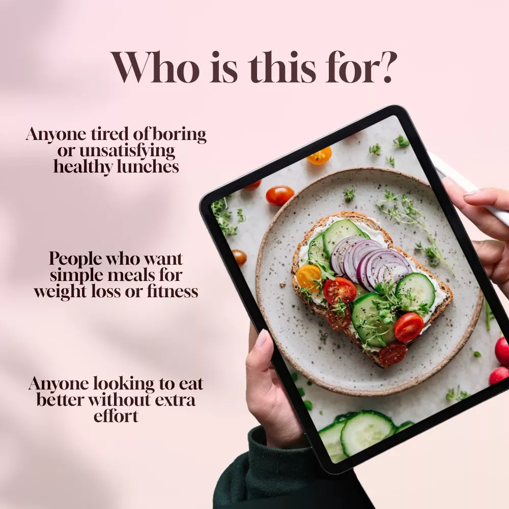 This guide is perfect for anyone who wants to improve their eating habits without giving up satisfaction at lunchtime. Whether you’re new to healthy eating or looking to upgrade your current routine, this guide supports your goals with structure, flavor, and flexibility. It’s ideal for busy professionals, parents, fitness enthusiasts, and anyone tired of skipping lunch or settling for something that doesn’t really satisfy.