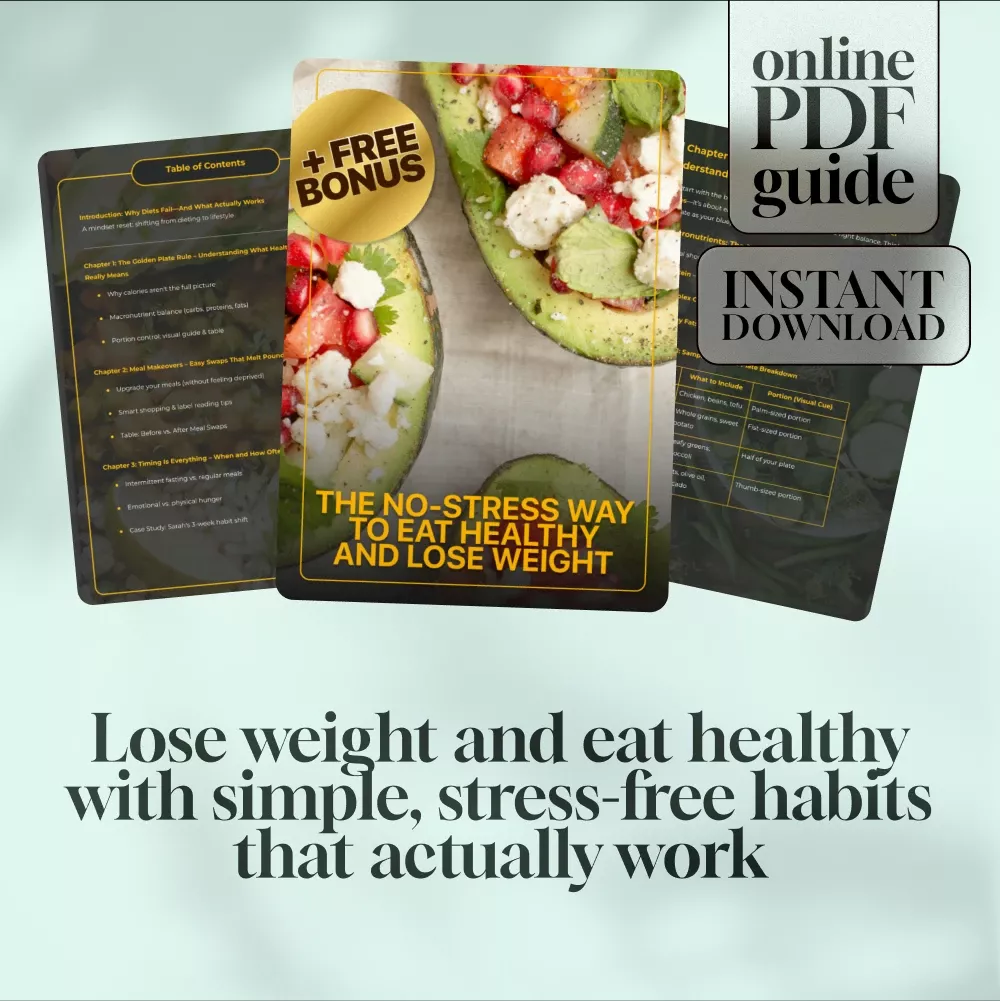 Ready to finally ditch diets for good? Say goodbye to complicated food rules, endless calorie counting, and guilt-driven meal plans. The No-Stress Way to Eat Healthy and Lose Weight is your complete digital guide to learning how to eat healthy to lose weight—without obsessing over every bite. This downloadable guide is perfect for anyone looking to build sustainable eating habits that actually work in real life. Designed with busy women, health beginners, and yo-yo dieters in mind, this eBook simplifies the science of nutrition into real-life, no-fluff strategies you can start today.