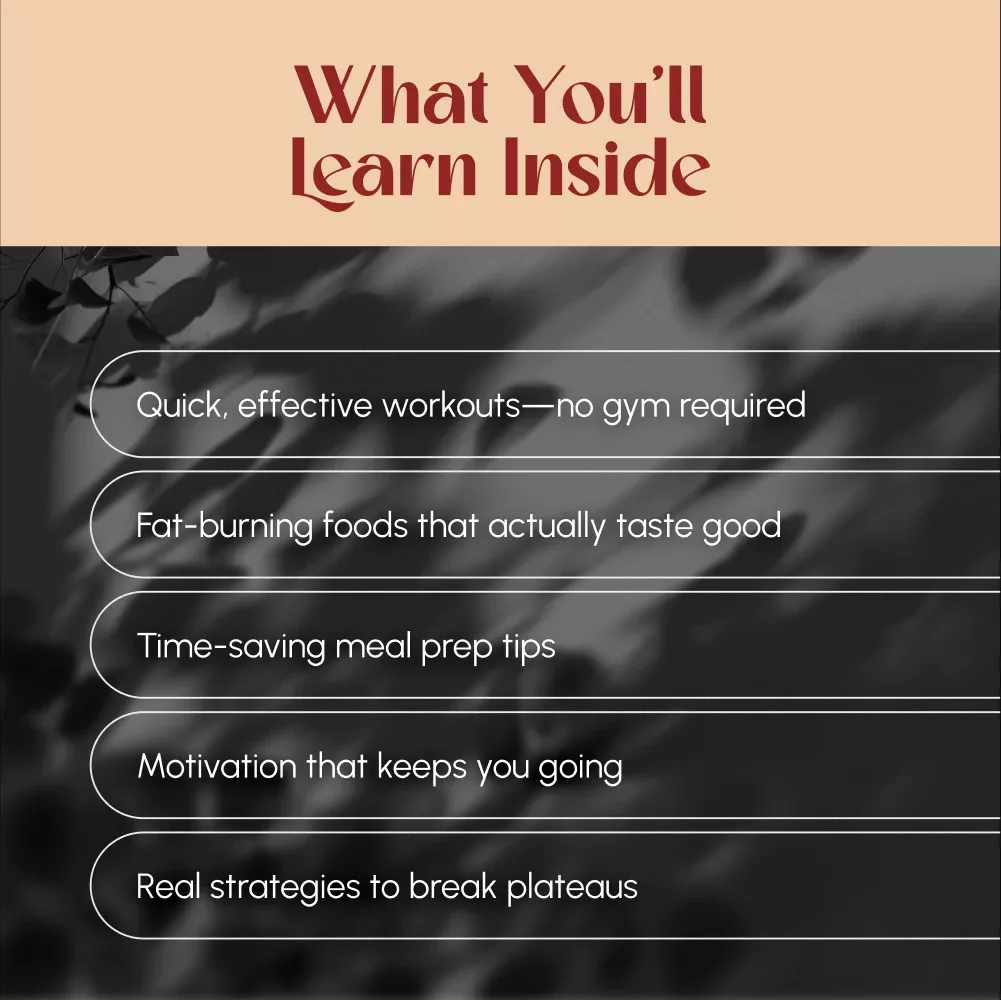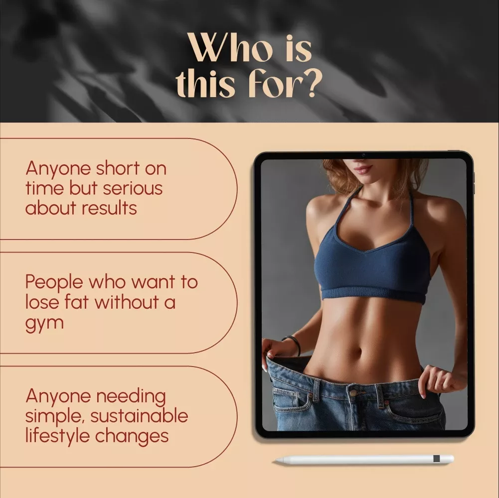 This digital download is ideal for beginners, busy parents, working professionals, or anyone who wants to learn how to burn fat fast at home without crash diets or complicated routines. If you’re tired of fad programs that don’t work or just want a realistic, results-driven approach, this guide is made for you.