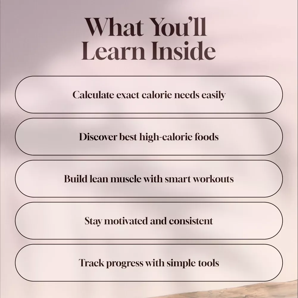 This eBook is perfect for anyone who wants to learn how to increase calories to gain weight safely and effectively. Whether you’re a student, athlete, busy professional, or just looking to feel stronger and more energized, this guide adapts to your goals and lifestyle.
