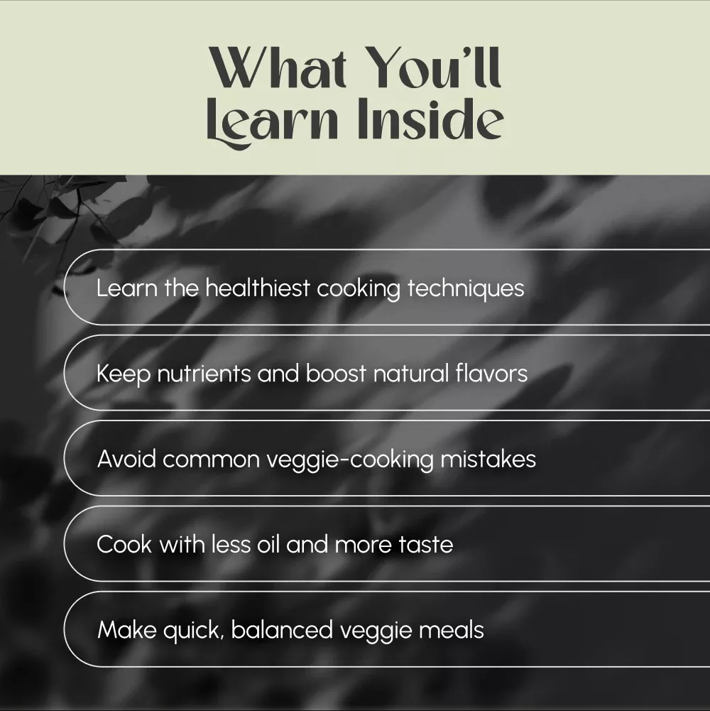 As a busy parent, I'm always on the lookout for ways to make healthy cooking simpler and more enjoyable. This digital guide has been an absolute revelation in that regard! It's packed with practical tips and easy-to-follow recipes that have taken the stress out of preparing nutritious meals for my family. The section on different types of veggies (leafy greens, cruciferous, roots) is particularly informative; it's helped me understand how each type needs to be cooked for optimal taste and nutrition. Plus, the emphasis on low-oil high-flavor cooking methods aligns perfectly with our health-conscious lifestyle.