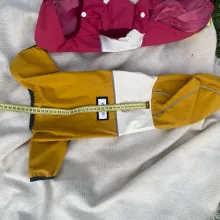 The quality of the jacket is excellent. In our case, I would like a little more space in the chest and neck area. The dog weighs 6 kg. (OV. Chest 46-47, neck circumference approx. 33 cm, back length-36 cm.).