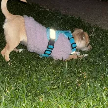 It is truly beautiful, warm, elastic, comfortable and tender, perfect size, covers all its tenderloin, my 10 kilo puppy was perfect