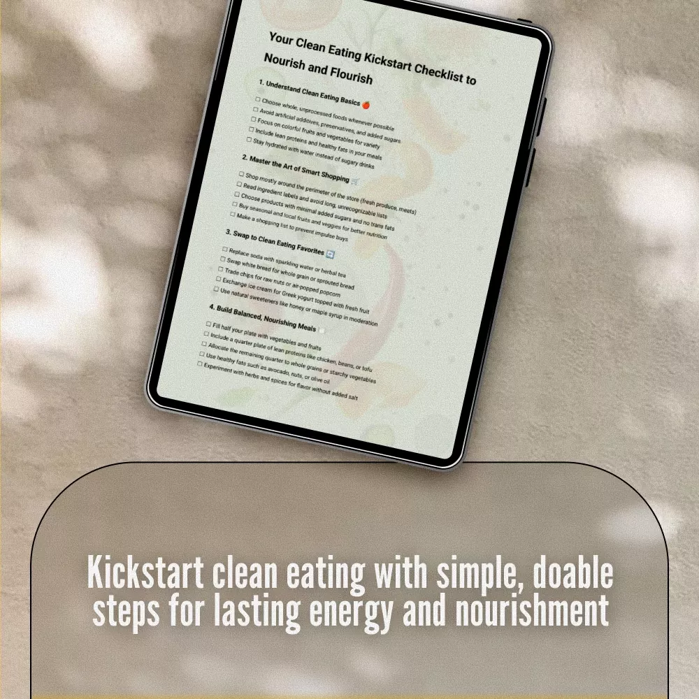 Clean eating doesn’t have to be complicated. With Your Clean Eating Kickstart Checklist to Nourish and Flourish, you’ll gain the clarity, structure, and encouragement to take those first steps with confidence. If you’ve been searching for how to start eating clean for beginners, this digital guide will become your go-to resource.