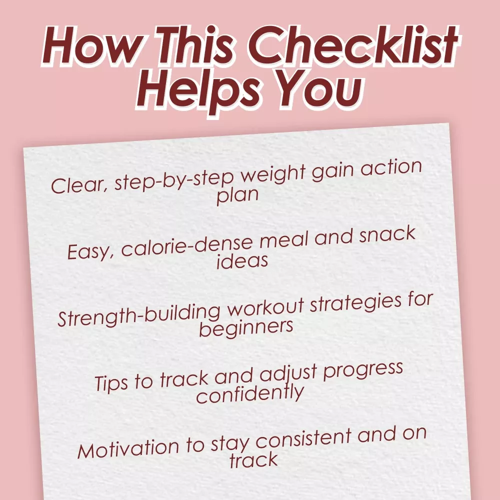 🌟 This guide is like a personal trainer in your pocket! It's been so helpful for my weight gain journey. I've always struggled to put on pounds, but this checklist has made it easier and fun too!